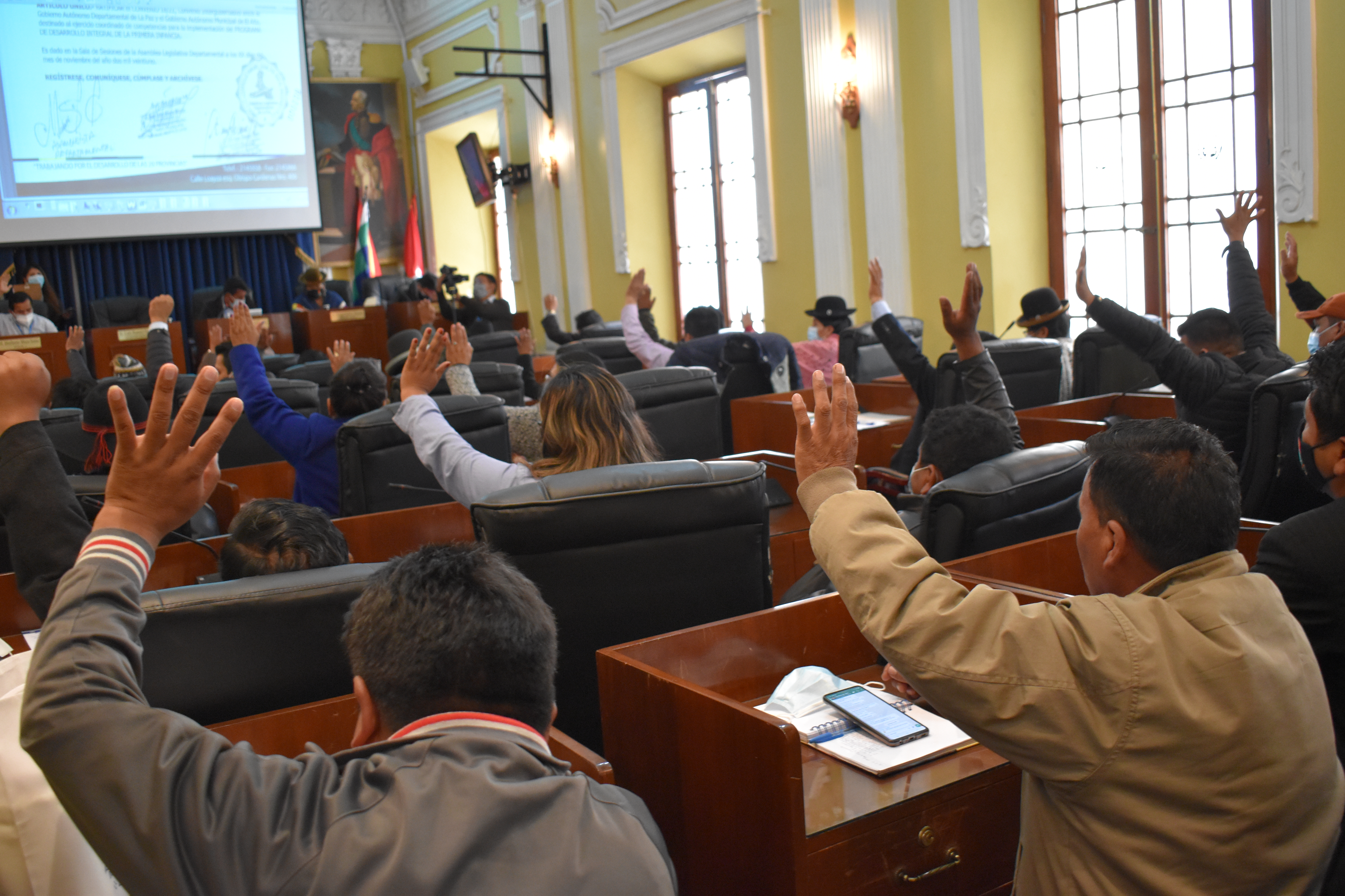 La Paz, 16 de noviembre de 2021 (PRENSA-ALDLP). – La Directiva de la Asamblea Legislativa Departamental de La Paz (ALDLP), la mañana de hoy 16 de noviembre de 2021, de conformidad con el Articulo 49 del Reglamento Interno de este ente legislativo, instaló la VIGESIMA CUARTA Sesión Ordinaria del Pleno, que se desarrolló en el Hemiciclo de la Asamblea Legislativa Departamental De La Paz (ALDLP), con la finalidad de tratar y considerar el Convenio Nro. 18/21, Convenio Intergubernativo entre el Gobierno Autónomo Departamental de La Paz y el Gobierno Autónomo Municipal de El Alto, destinado al Ejercicio Coordinado de Competencias para la Implementación del Programa de Desarrollo Integral de la primera infancia. En este entendido, el Pleno de la ALDLP, en el punto 3 de orden del día y después de la consideración del Informe, emitido por la Comisión de Desarrollo Humano, Derechos Humanos, Política Social Naciones y Pueblos Indígenas Originario Campesino , el pleno por unanimidad resolvió aprobar el informe con CITE: ALDLP/CDHDDHHPSNyPIO/INF Nª024/2021-2022, referente a CONVENIO INTERGUBERTIVO, DESTINADO AL EJERCICIO COORDINADO DE COMPETENCIAS PARA IMPLEMENTACIÓN DEL PROGRAMA DE DESARROLLO INTEGRAL DE LA PRIMERA INFANCIA.
